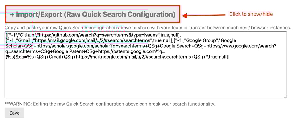 Import/Export (Raw Quick Search Configuration)