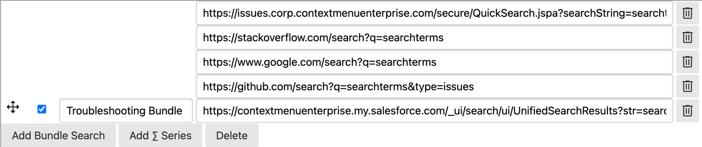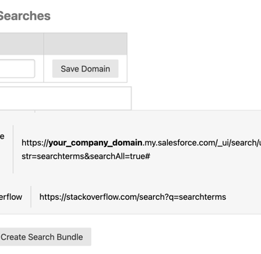 Bundle searches can be used for many other use cases besides technical troubleshooting as well. For example, maybe your Sales team has 5 or 6 different lookups they perform for every new prospect, or maybe they just need to open up many different forms which need to be completed to add a customer into Salesforce. With Bundle Search, this can all be consolidated into a "bundle" and everything opened with just a single click, which of course saves valuable time, but also, ensures steps and SOPs are not forgotten.