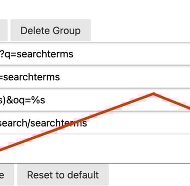 To create a group, click the + Add Group button, then add new lines for searches in that group with the Add Search to Group button. To delete a search from the group, click the trashcan next to that search.