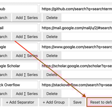 When pressed, this button will ask you if you're sure you want to reset, then update the menu back to the original sample menu that comes with Quick Search when you first download the extension.