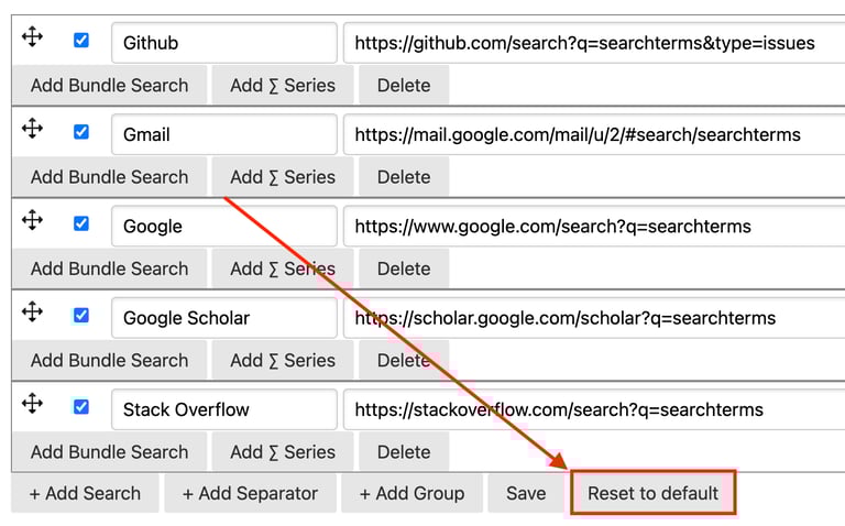 Another Quick Search feature which can come in handy is the Reset to default button.